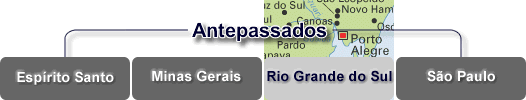 . . Aqui temos a relação de algumas pessoas separadas em ramos familiares que fixaram residência no estado do Rio Grande do Sul, a principio todos os ramos familiares aqui listados não tem ligação, digo a principio pois pode ser tenham ligação, mas não disponho dessa informação ainda, normalmente essas pessoas são a origem de seus ramos familiares no Brasil. Se encontrar algum antepassado seu faça contato e se não encontrar também, pois só assim desenvolveremos o seu ramo familiar, alguns ramos já estão bem desenvolvidos.